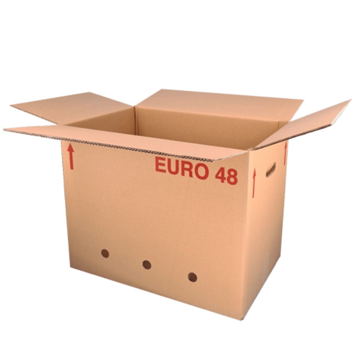 Vous recherchez un emballage solide et facile à manipuler ? Dans ce cas, notre boîte euro entière est ce qu'il vous faut. Spécialement conçues pour les entrepôts, ces boîtes offrent une solution pratique pour le stockage et le transport des produits. La longueur et la largeur des caisses euro étant précisément adaptées à la taille d'une palette euro, la surface de la palette est toujours utilisée de manière efficace. De plus, les boîtes ne dépassent pas.