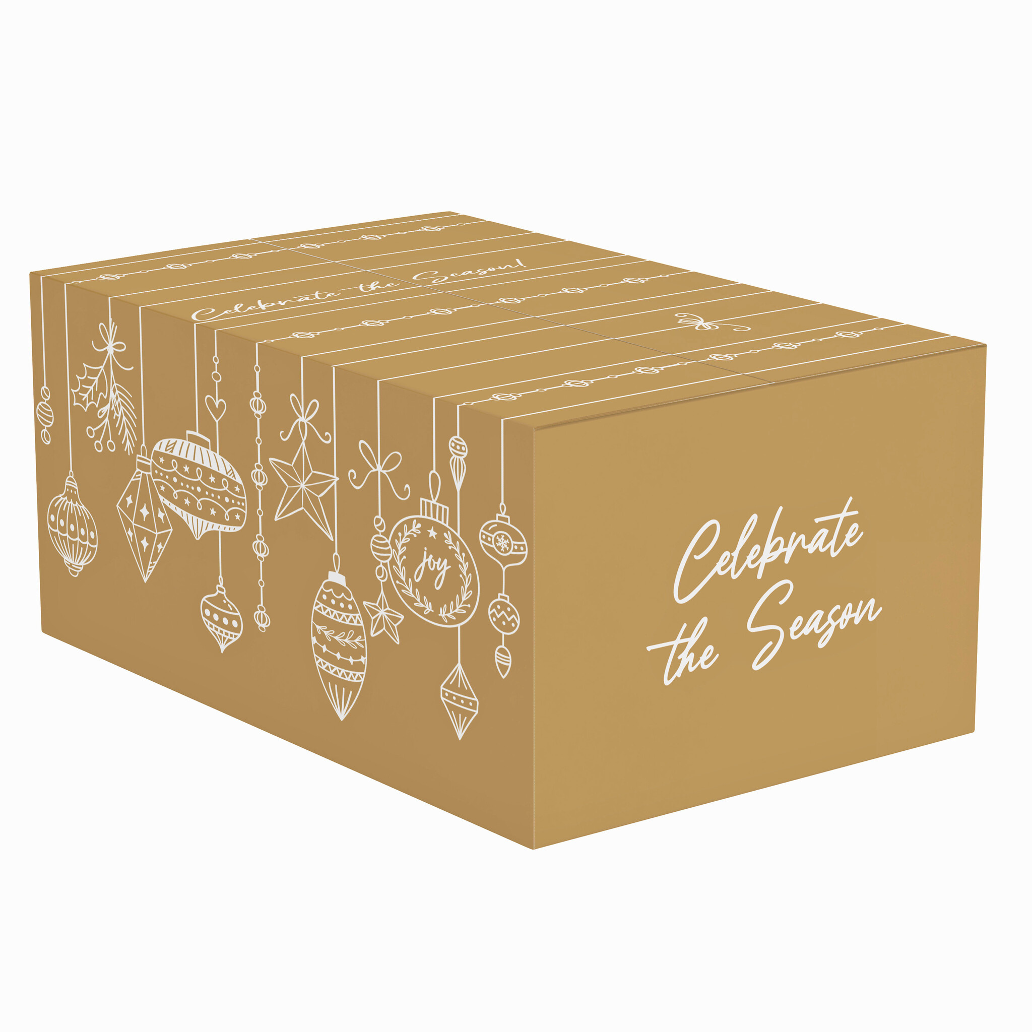 Ces boîtes robustes présentent une belle impression classique, ce qui les rend idéales pour presque tous les emballages de cadeaux. Il donne une belle apparence surtout pendant les vacances et sont déjà disponibles à partir de 15 pièces. Bien sûr, vous pouvez les utiliser pour d'autres occasions que Noël et la qualité solide de ces boîtes permet également de les empiler.