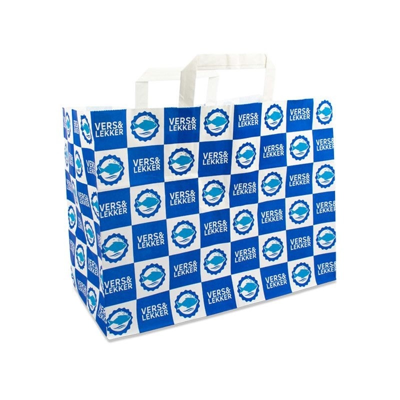 Vous cherchez le sac de transport idéal pour présenter vos délicieuses créations à base de poisson à vos clients de manière élégante et en toute sécurité ? Ne cherchez plus ! Notre sac en papier de haute qualité - Fresh & Tasty FISH est spécialement conçu pour répondre à tous vos besoins. Mesurant 32x16x28cm, ce sac offre suffisamment d'espace pour divers produits de la pêche, qu'il s'agisse de délices fraîchement pêchés ou de fruits de mer soigneusement préparés.