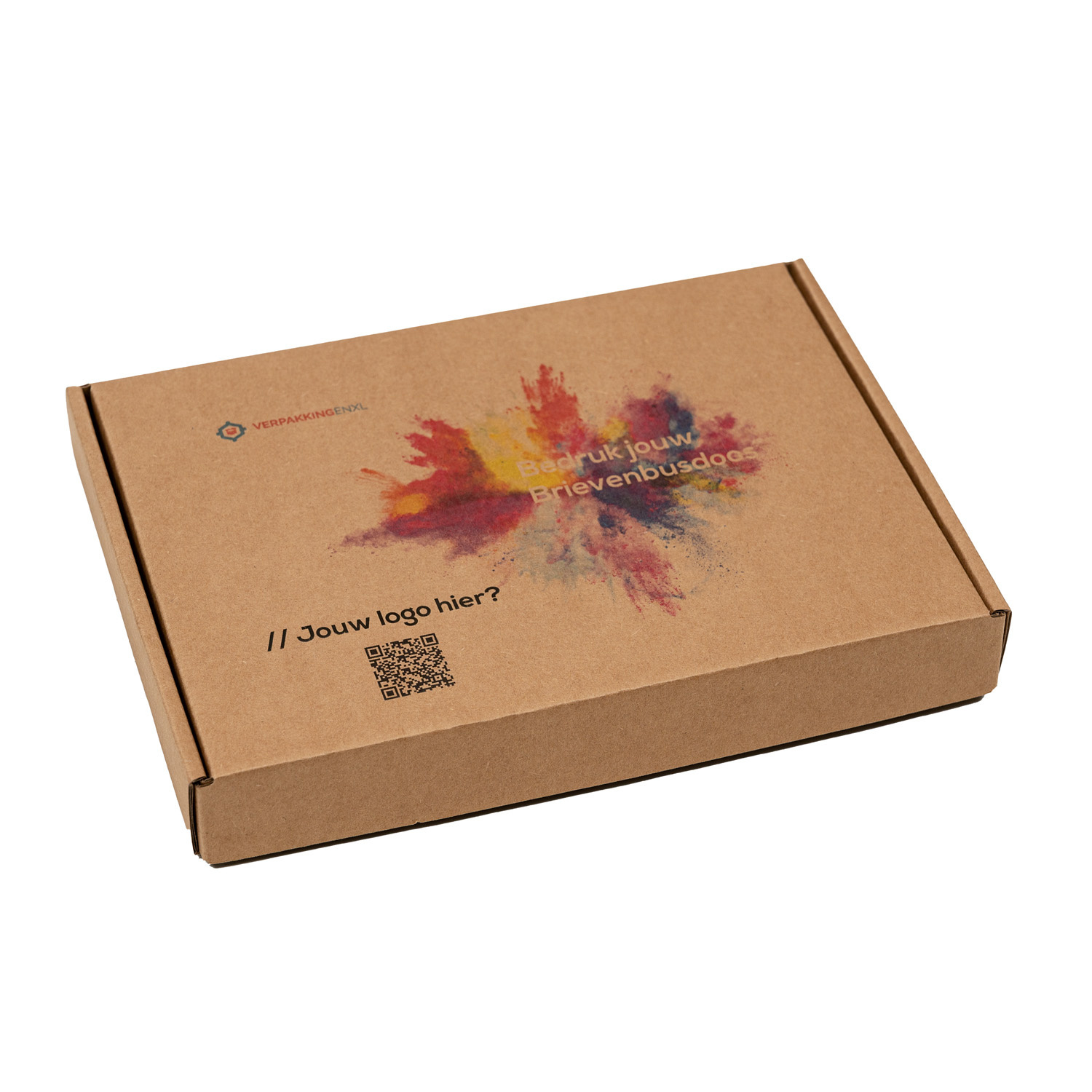 Zoek je een stevige en praktische verpakking om jouw producten stijlvol en veilig te versturen? Deze brievenbusdoos van golfkarton is ideaal. Met een formaat van 370 x 260 x 30 mm past hij perfect door de brievenbus. Bovendien kun je deze doos laten bedrukken met je eigen ontwerp, wat zorgt voor een professionele uitstraling bij je klanten.