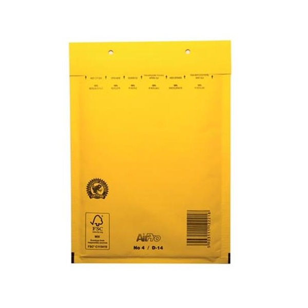 Specificaties van de 180 x 265 mm luchtkussen envelop met gele kleur