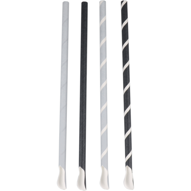 Met deze lepelrietjes van 230 mm lang en gemaakt van papier kunt u drankjes op een unieke manier serveren. De rietjes zijn voorzien van een handig lepelvormig uiteinde, waardoor u eenvoudig kunt roeren en genieten van uw favoriete drankje. Handig voor o.a. Slush puppy's, milkshakes of ijskoffies.
