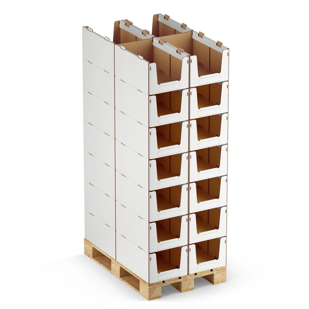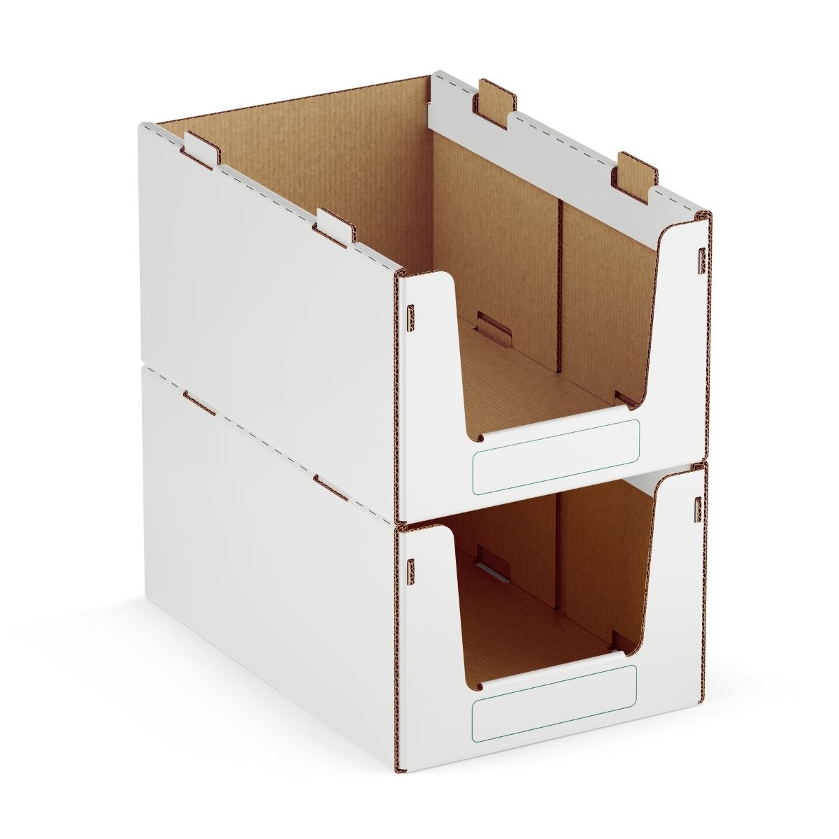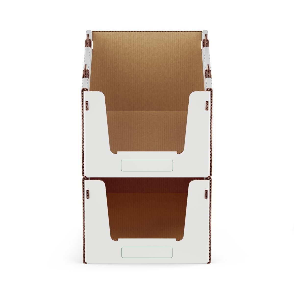 Deze magazijnbak is vervaardigd uit een extra stevige kartonsoort die een hoog draagvermogen garandeert. Dit materiaal biedt niet alleen stabiliteit, maar is ook volledig recyclebaar. Daarmee is de Pickbox® Large een duurzaam alternatief voor plastic bakken en draagt het bij aan een circulaire logistiek.