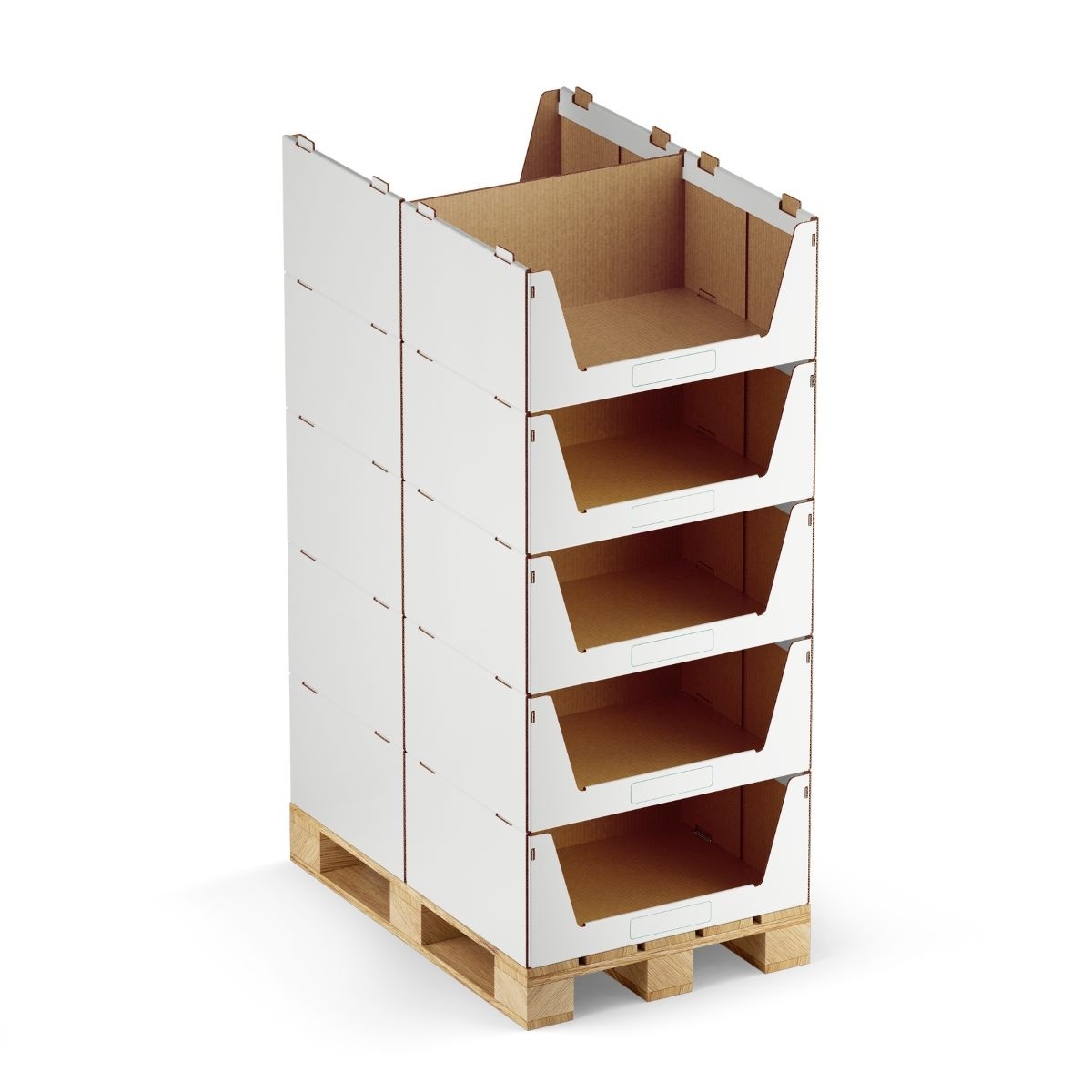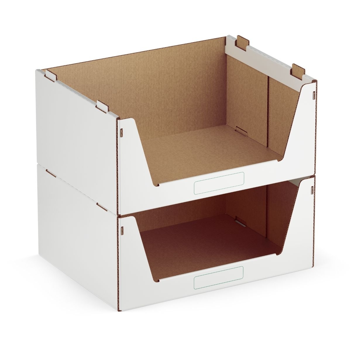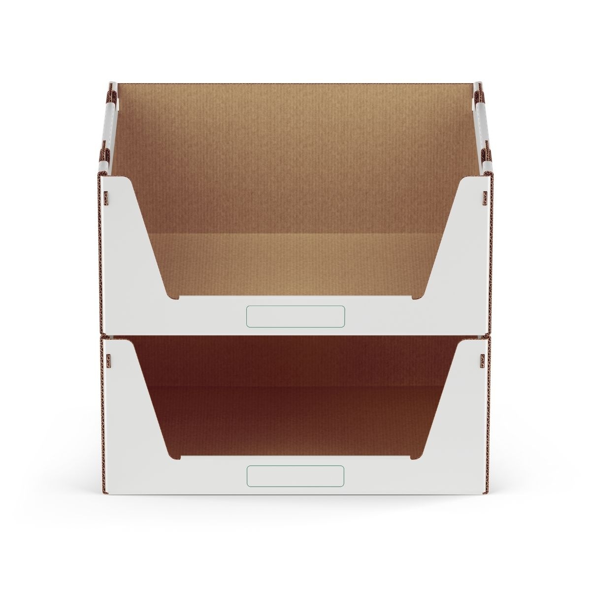 Het sterke karton is bestand tegen lichte vochtigheid en vuil, waardoor deze bakken ook geschikt zijn voor opslag in uiteenlopende magazijnomgevingen.
