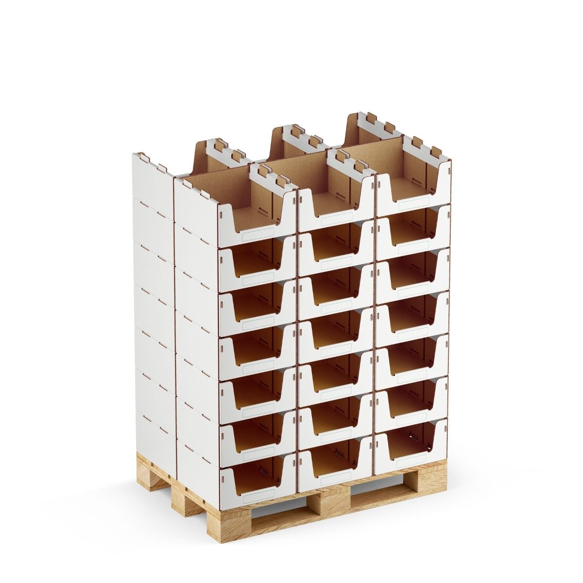 Qua formaat passen deze bakken perfect op een pallet. In het geval van de Pickbox® Small passen er zes dozen per slag, waardoor je efficiënt kunt stapelen en transporteren. Ben je op zoek naar een ander formaat opslagdoos? Bekijk ons complete assortiment hier.